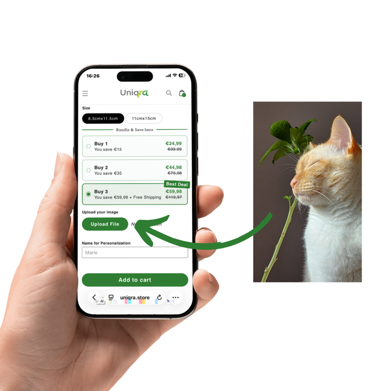 Simply choose the quantity you want, upload your image(s), and enter the name(s) for personalization. Once completed, add the item to your cart and proceed to checkout. It’s quick and easy!