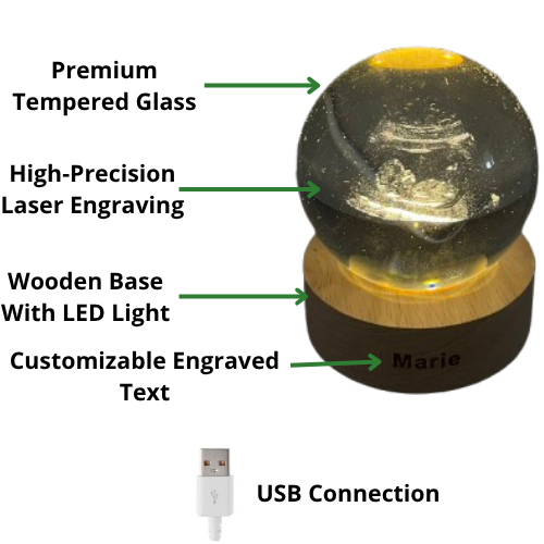 I gave this sphere to my wife with our son's ultrasound inside, and I have no words to describe her reaction. She was moved to tears. The engraving quality is incredible. every detail is so clear, and the light adds a magical touch. It was the perfect gift for such a meaningful moment. Thank you for helping us preserve this memory forever.
